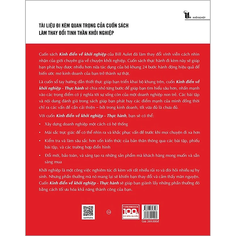 Cuốn sách Kinh điển về khởi nghiệp của Bill Aulet ra mắt trước đó đã làm thay đổi vĩnh viễn cách nhìn nhận của giới chuyên gia về chuyện khởi nghiệp. Cuốn sách “Kinh điển về khởi nghiệp – Thực hành” đi kèm này không thể thay thế cho cuốn Kinh điển về khởi nghiệp mà là một tài liệu bổ sung. Nó như là cuốn sổ tay hướng dẫn thiết thực giúp bạn triển khai bộ khung trên, cuốn Kinh điển về khởi nghiệp – Thực hành sẽ chia nhỏ từng bước để giúp bạn tìm hiểu sâu hơn, nhấn mạnh vào các trọng điểm có ý nghĩa tới sự sống còn của một doanh nghiệp non trẻ. Các bài tập và nội dung đánh giá trong sách giúp bạn phát huy các điểm mạnh của mình đồng thời chỉ ra các vấn đề cần cải thiện – bởi trong kinh doanh, tốt vừa đủ là chưa đủ.