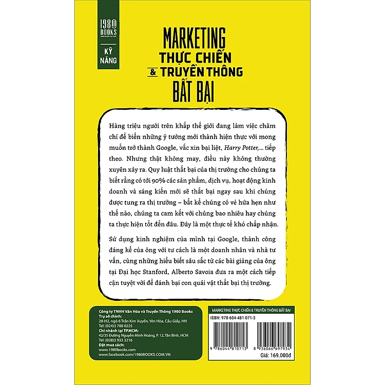 Tuy nhiên bằng kinh nghiệm của mình tại Google, với các thành tựu xuất sắc trên cương vi một doanh nhân và nhà tư vấn, cũng như là nhà diễn thuyết uy tín tại Đại học Stanford và Google, tác giả Alberto Savoia đã viết cuốn “Marketing thực chiến & Truyền thông bất bại” để “bày cách” giúp chúng ta hạ gục con Quái Vật Thất Bại.