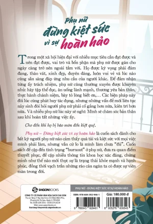 “Phụ nữ – Đừng kiệt sức vì sự hoàn hảo” là cuốn sách dành cho bất kỳ người phụ nữ nào cảm thấy quá tải và kiệt sức với mọi công việc mình phải làm, nhưng vẫn cứ lo là mình chưa làm “đủ”.