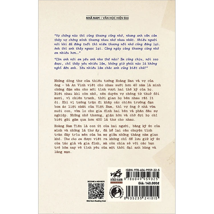 Hoàng Nam Tiến đã viết thật xúc động về câu chuyện tình yêu tràn đầy trìu mến của ba mẹ, thông qua những lá thư ấy, không chỉ để lưu giữ ký ức riêng của gia đình, mà còn kể lại cho người đọc hôm nay về một thời đại vô cùng anh hùng và tuyệt vời lãng mạn.