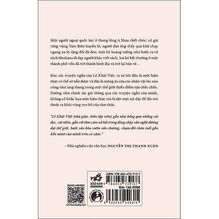 Một người ngoại quốc kẹt ở thung lũng A Shau chết chóc; cô gái vùng Tam Biên huyền bí; người đàn ông thấy quá khứ chạy ngang xa lộ rặng đồi đá đen; một kẻ hoang tưởng như bước ra từ sách Modiano đi dạy người khác viết sách; hai kẻ bất thường ở một thành phố vốn đã trở thành bình địa và trở lại bản vẽ Đọc các truyện ngắn của Lê Khải Việt, ta tự hỏi đâu là một hiện thực có thể sờ nắn được và đâu là mộng ảo của các nhân vật lúc nào cũng như lang thang trong một thế giới thiếu điểm tựa chắc chắn.